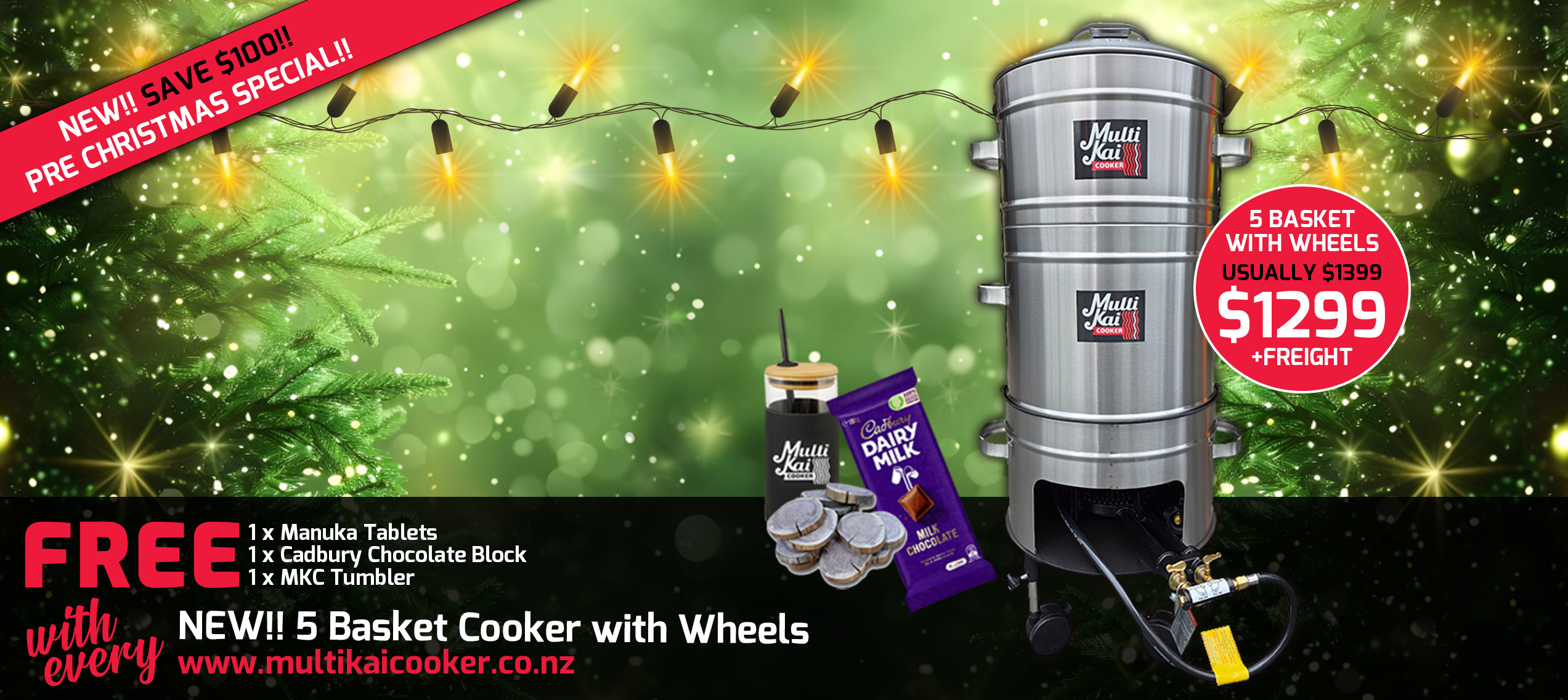 The MultiKai Cookers – World famous and well known for the above ground hangi style of cooking, (umu, luau). Not only an amazing above-ground hangi cooker that has all the flavour of an in-ground hangi, but has now developed into a truly unique multi-functional gas certified appliance that you can use for just about any form of cooking, such as a smoker, barbeque, roaster, steamer and more!