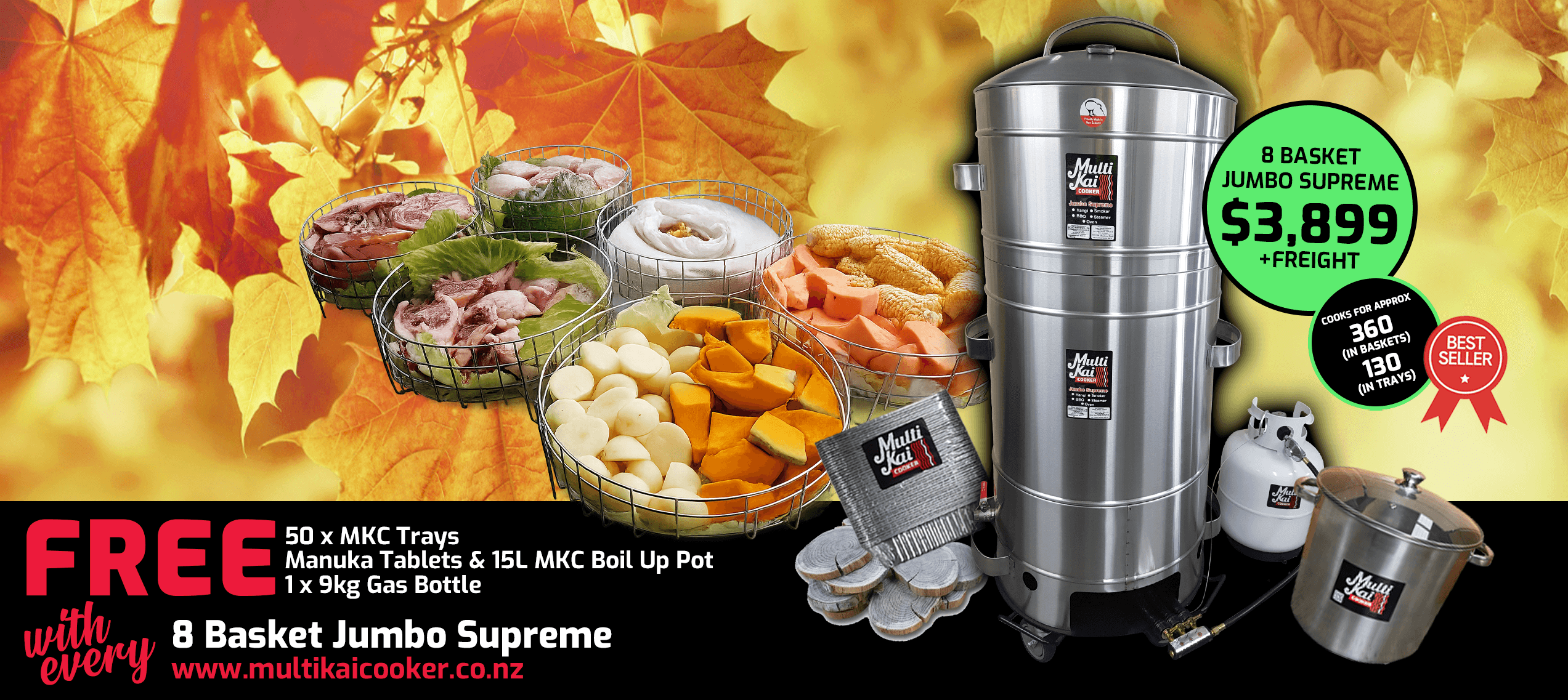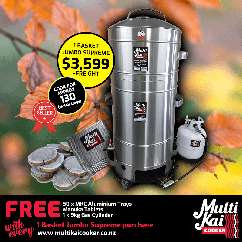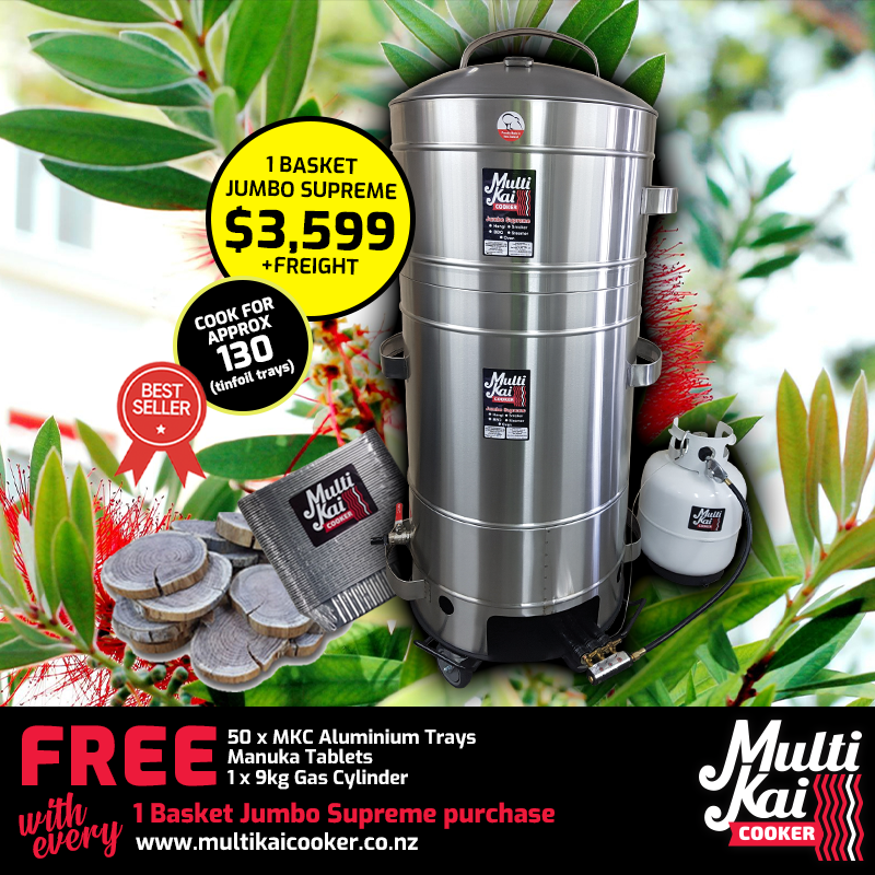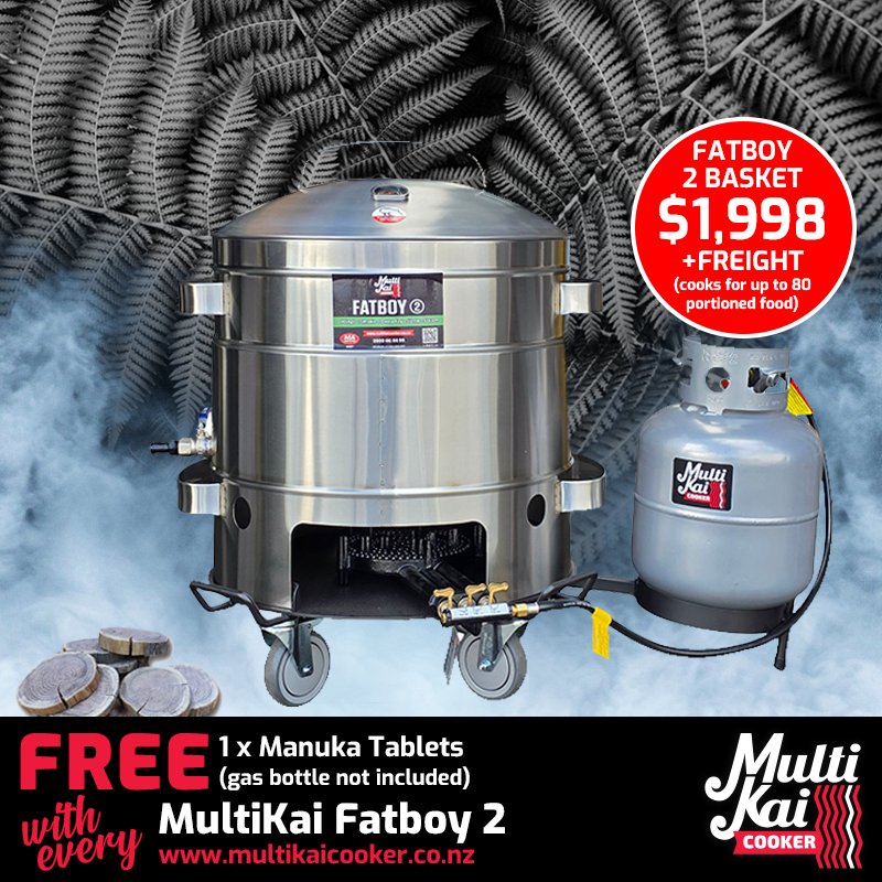 The MultiKai Cookers – World famous and well known for the above ground hangi style of cooking, (umu, luau). Not only an amazing above-ground hangi cooker that has all the flavour of an in-ground hangi, but has now developed into a truly unique multi-functional gas certified appliance that you can use for just about any form of cooking, such as a smoker, barbeque, roaster, steamer and more!
