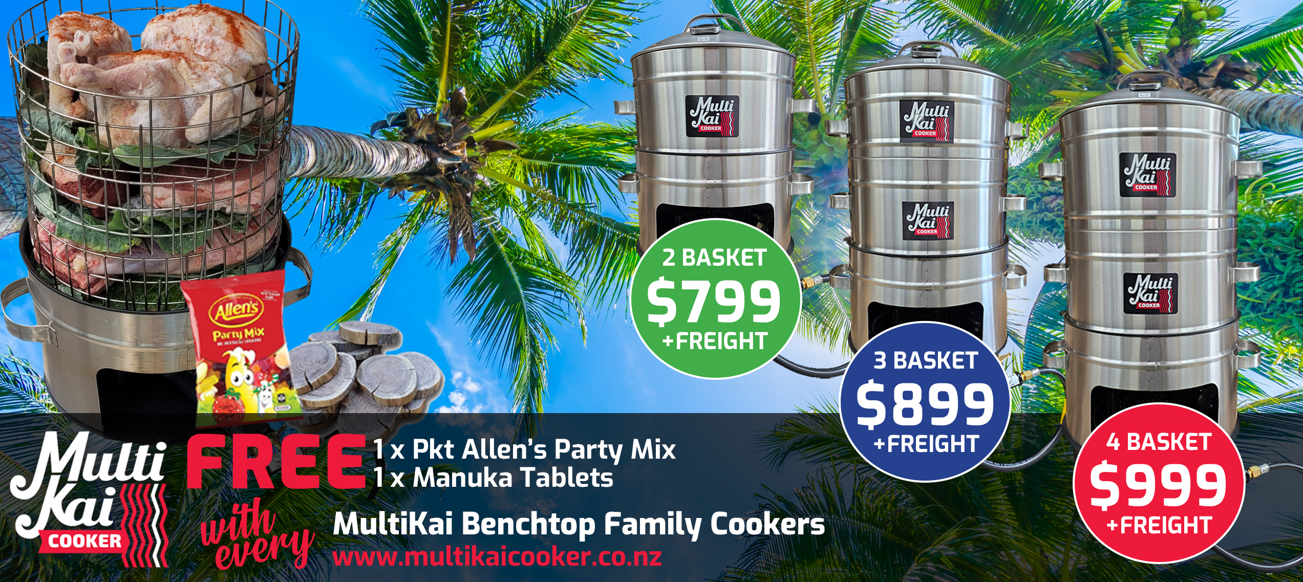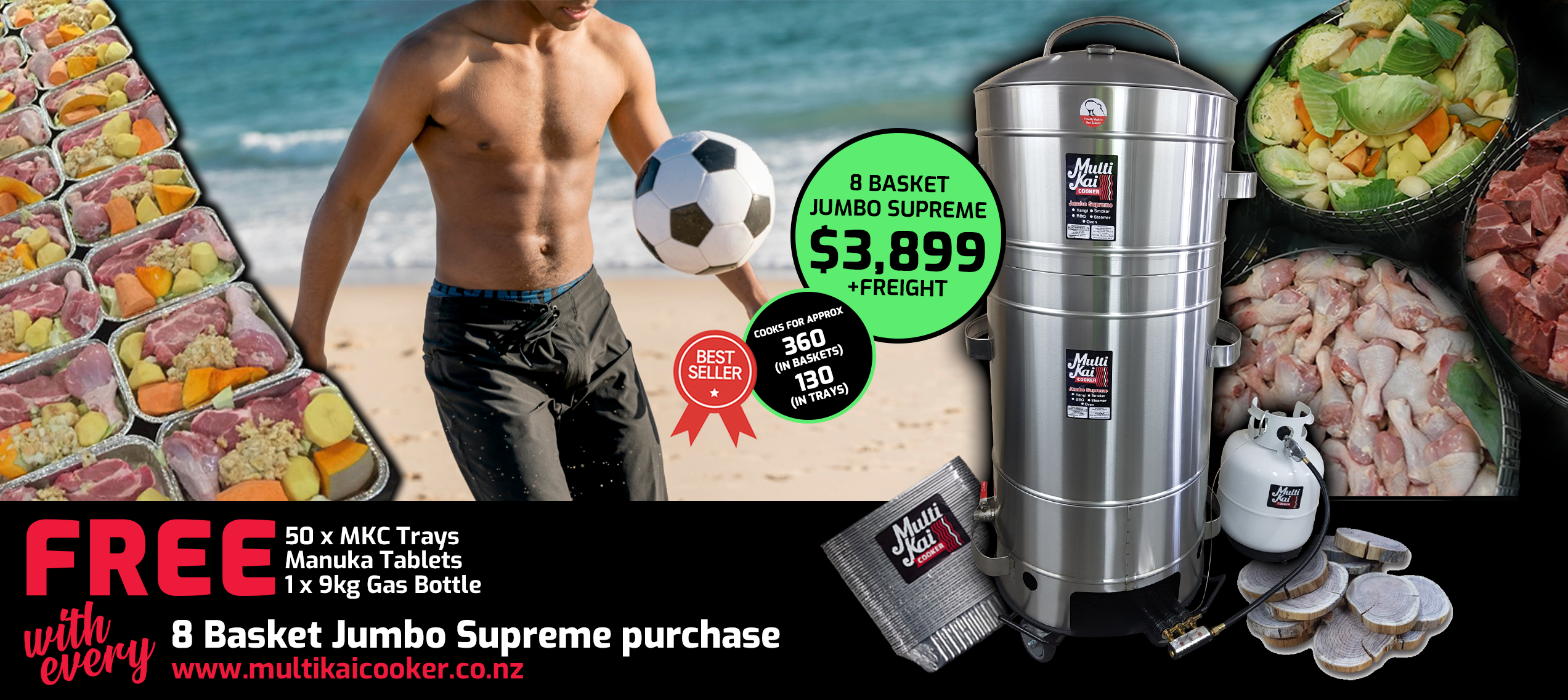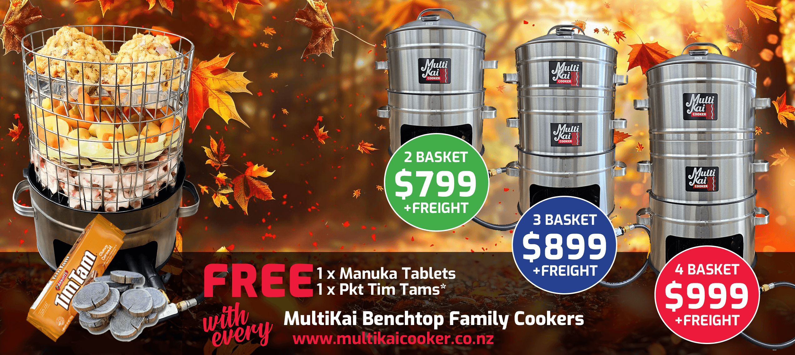 The MultiKai Cookers – World famous and well known for the above ground hangi style of cooking, (umu, luau). Not only an amazing above-ground hangi cooker that has all the flavour of an in-ground hangi, but has now developed into a truly unique multi-functional gas certified appliance that you can use for just about any form of cooking, such as a smoker, barbeque, roaster, steamer and more!