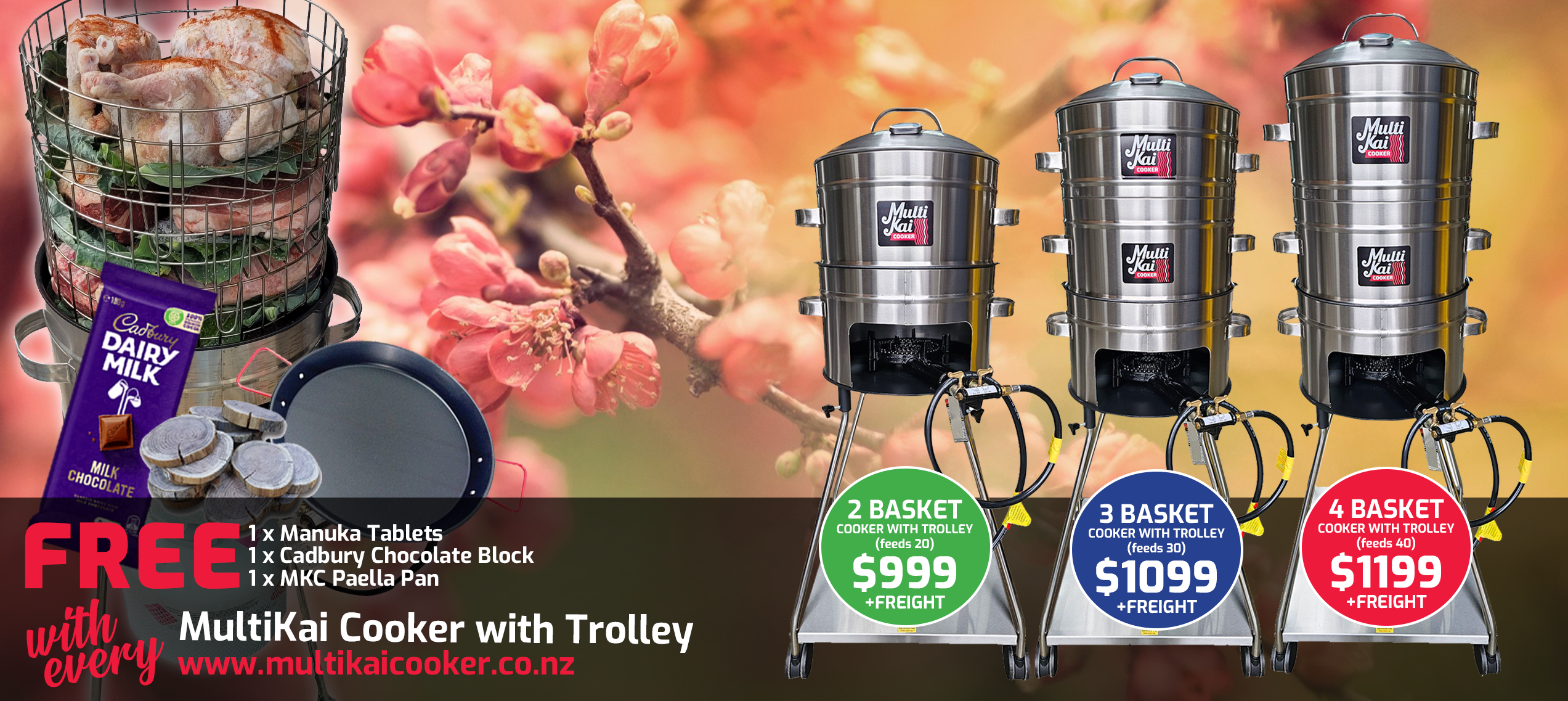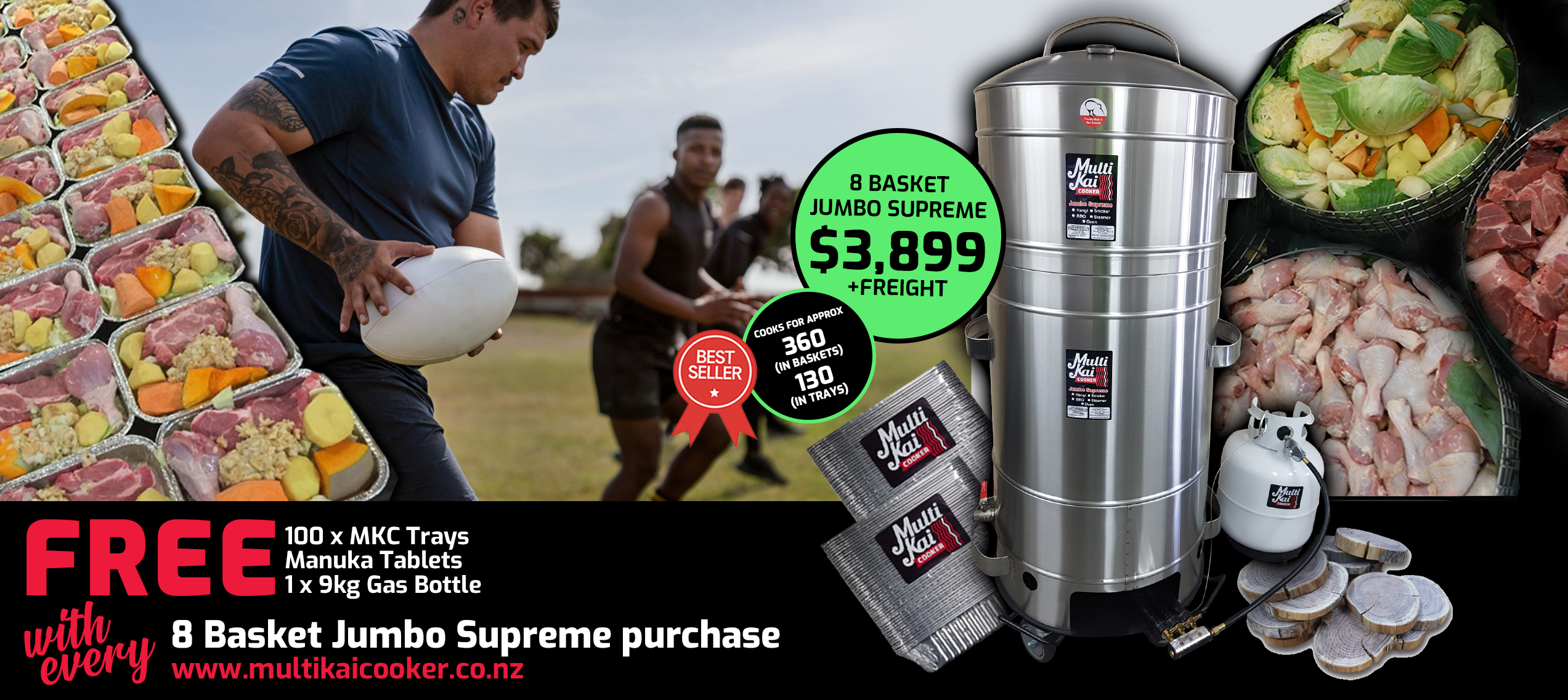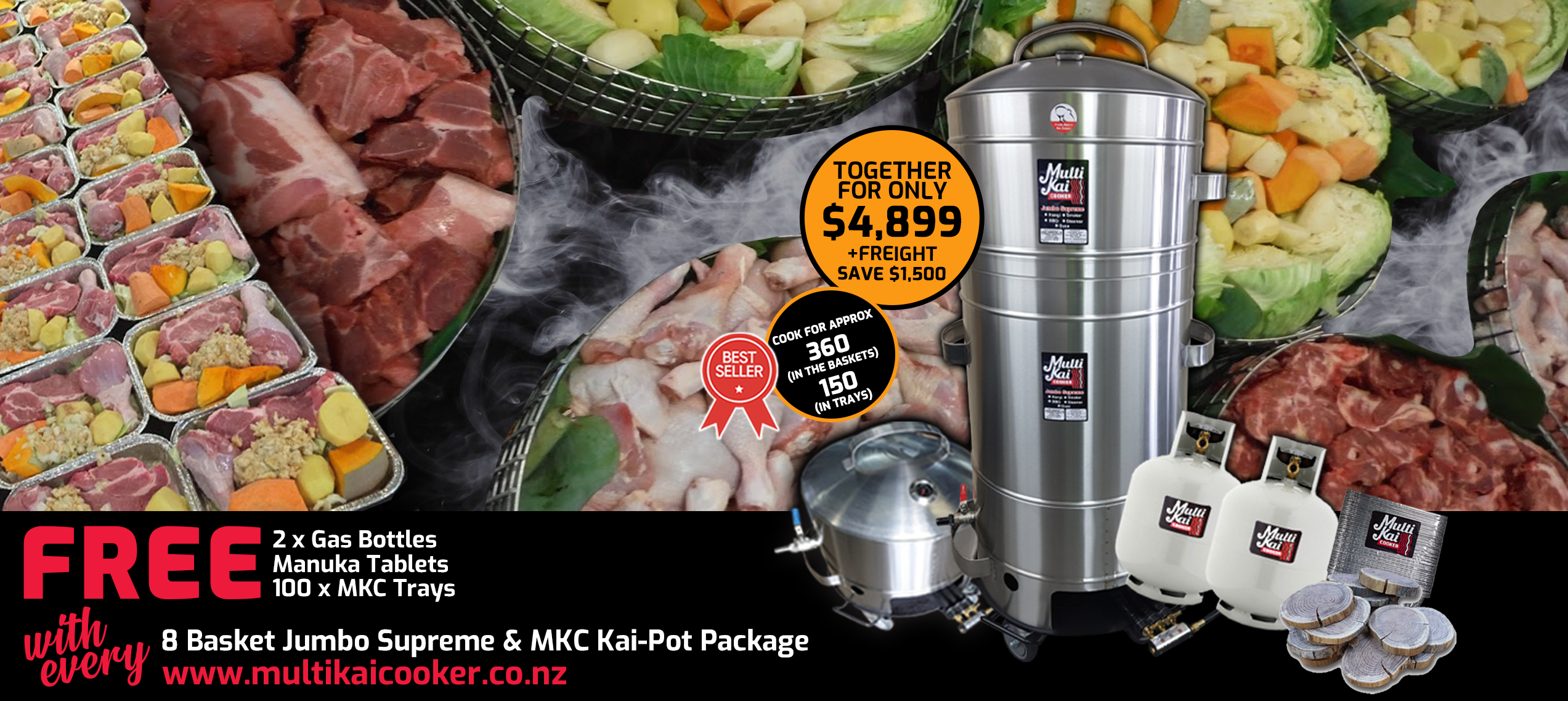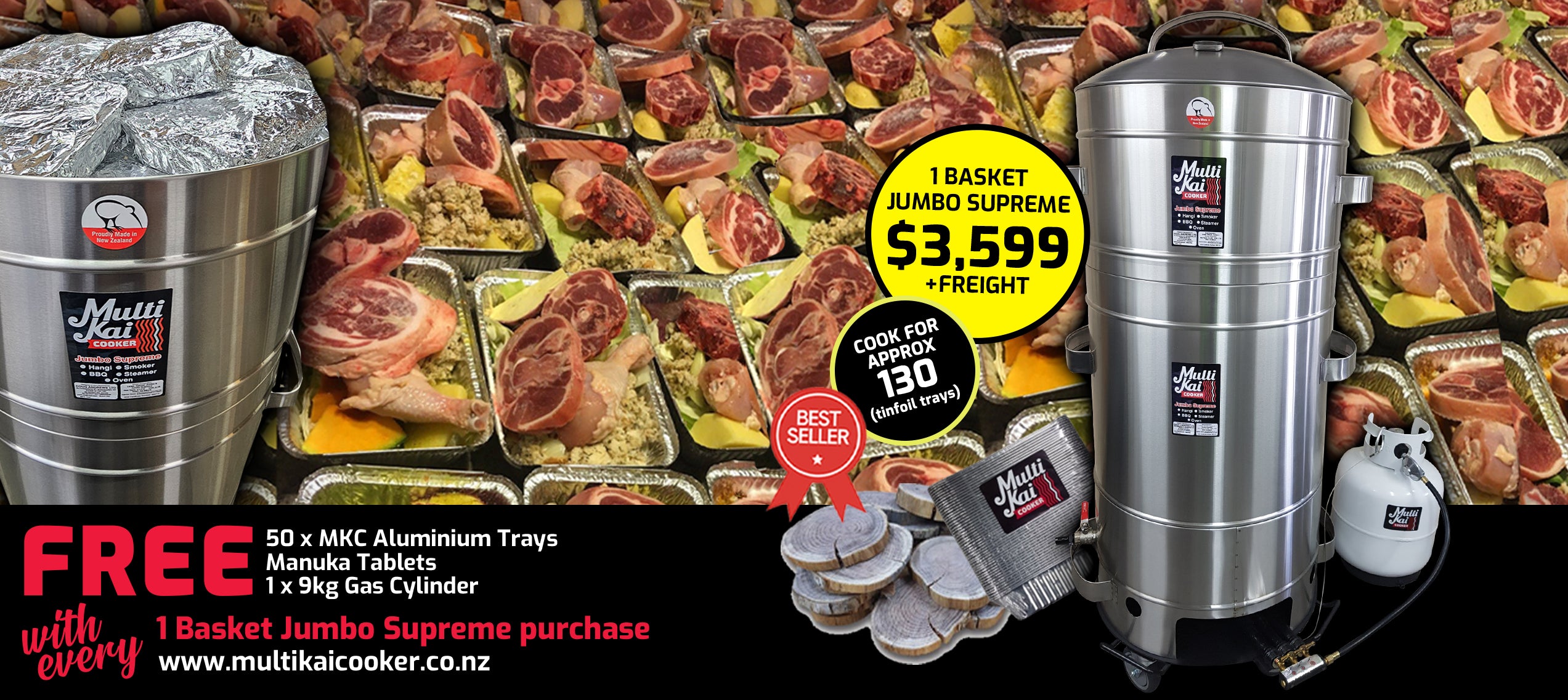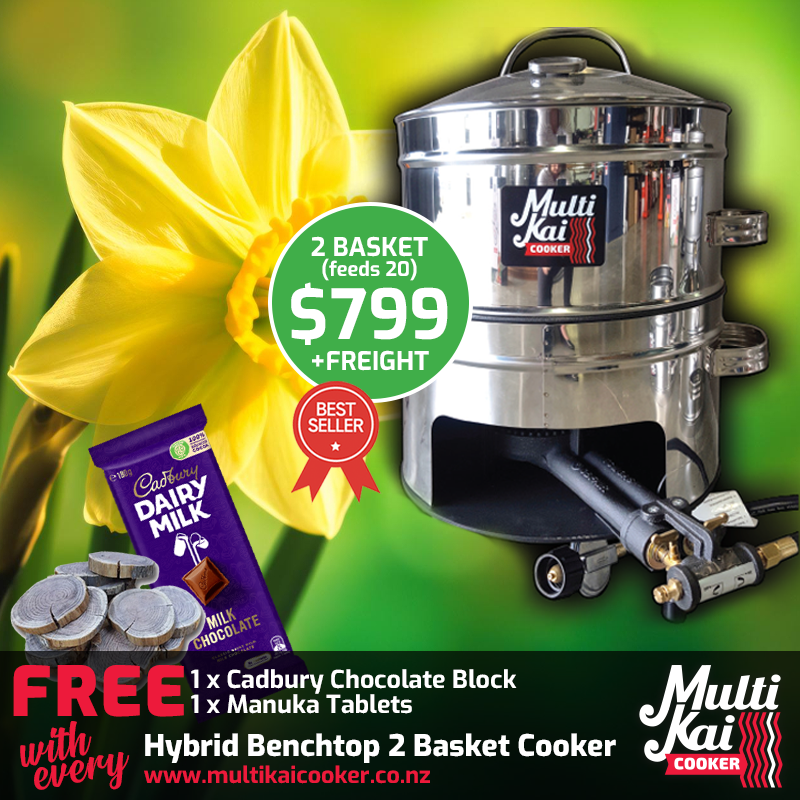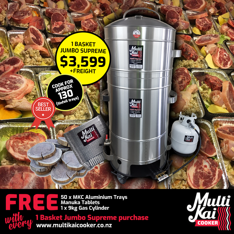 The MultiKai Cookers – World famous and well known for the above ground hangi style of cooking, (umu, luau). Not only an amazing above-ground hangi cooker that has all the flavour of an in-ground hangi, but has now developed into a truly unique multi-functional gas certified appliance that you can use for just about any form of cooking, such as a smoker, barbeque, roaster, steamer and more!